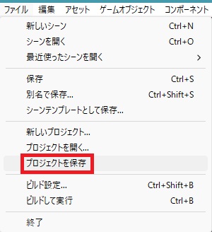 ファイル → プロジェクトを保存(Ctrl + Shift + S)